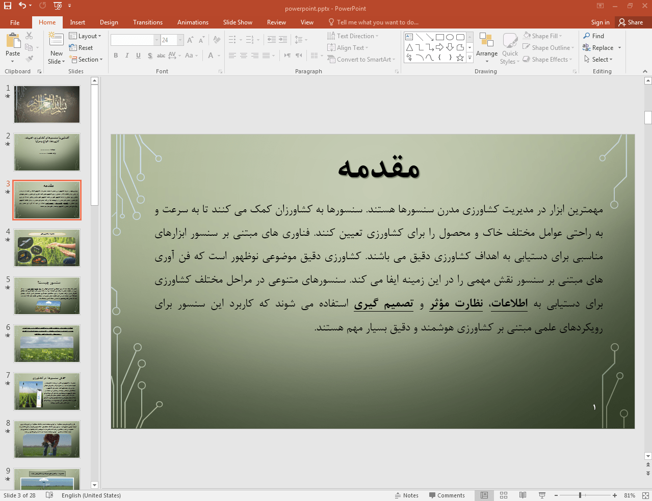 این پاورپوینت در 28 اسلاید تهیه شده و در ادامه نیز تصویر مربوط به اسلاید شماره 3 آن قرار داده شده است: