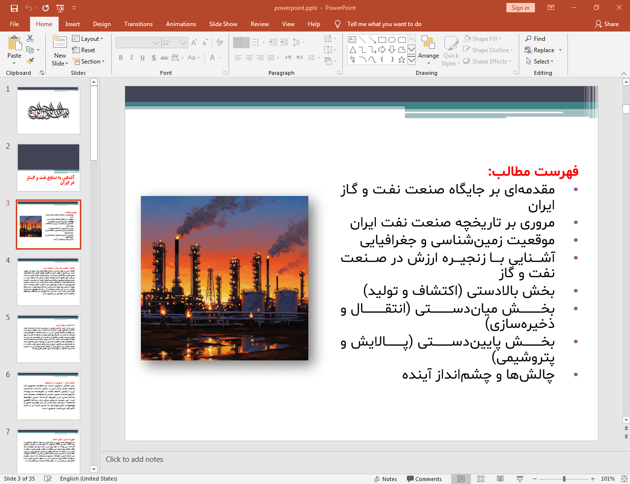 این پاورپوینت در 35 اسلاید تهیه شده و در ادامه نیز تصویر مربوط به اسلاید شماره 3 آن قرار داده شده است: