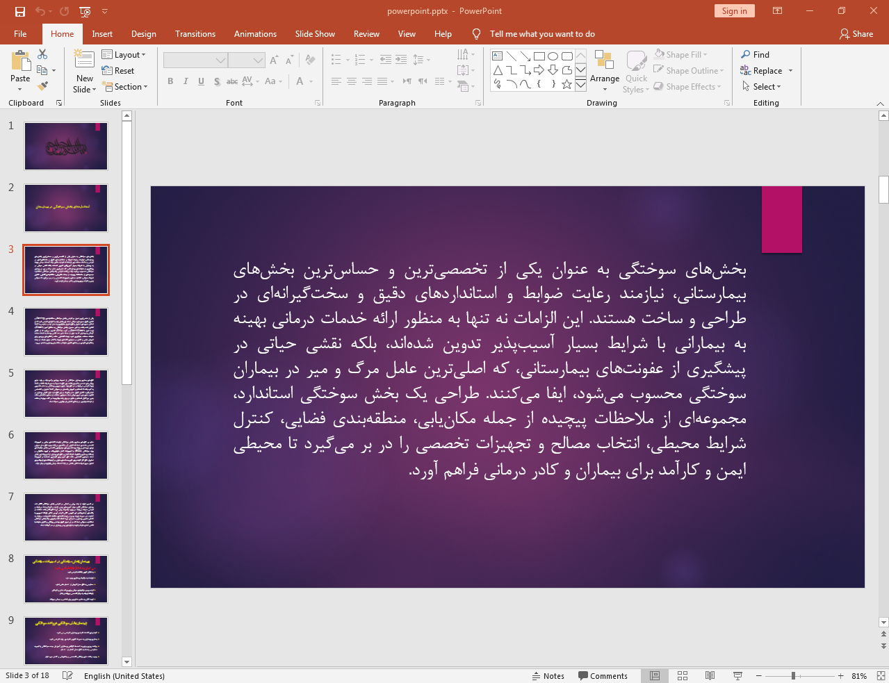 این پاورپوینت در 18 اسلاید تهیه شده و در ادامه نیز تصویر مربوط به اسلاید شماره 3 آن قرار داده شده است: