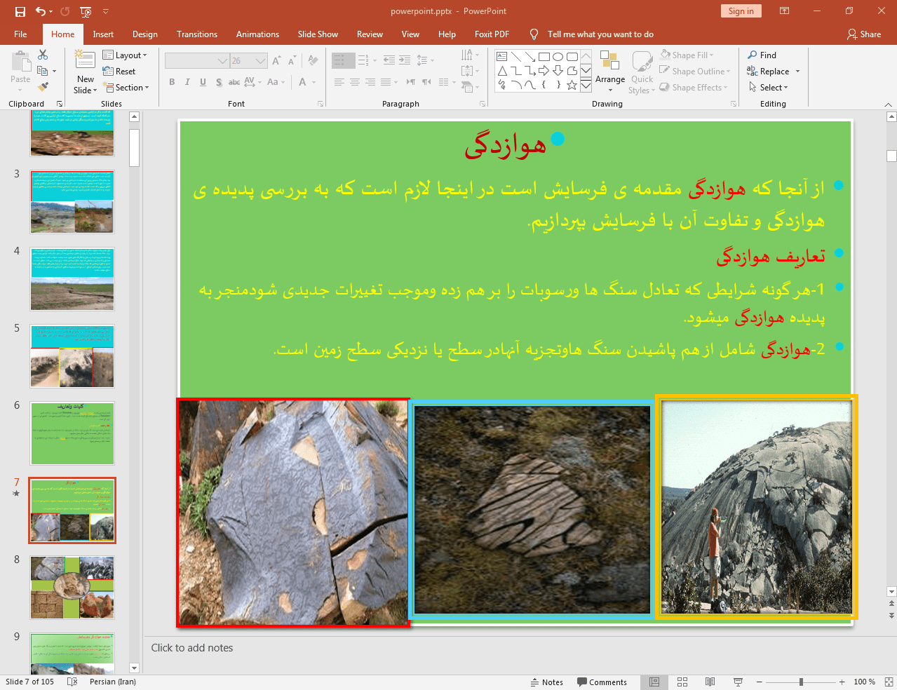 این پاورپوینت در 105 اسلاید تهیه شده و در ادامه نیز تصویر مربوط به اسلاید شماره 7 آن قرار داده شده است: