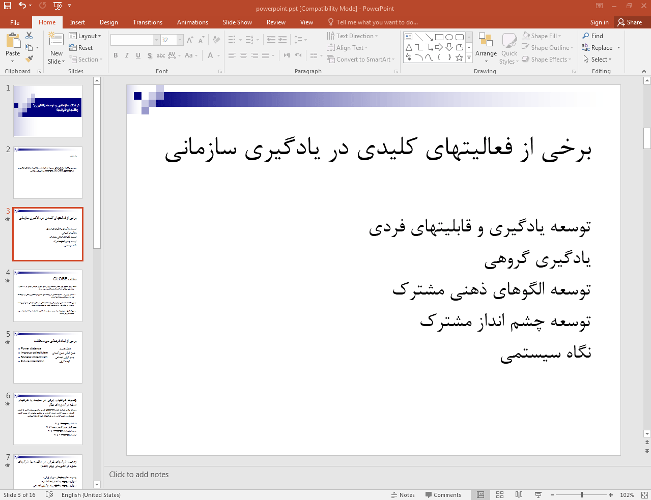 این پاورپوینت در 16 اسلاید تهیه شده و در ادامه نیز تصویر مربوط به اسلاید شماره 3 آن قرار داده شده است: