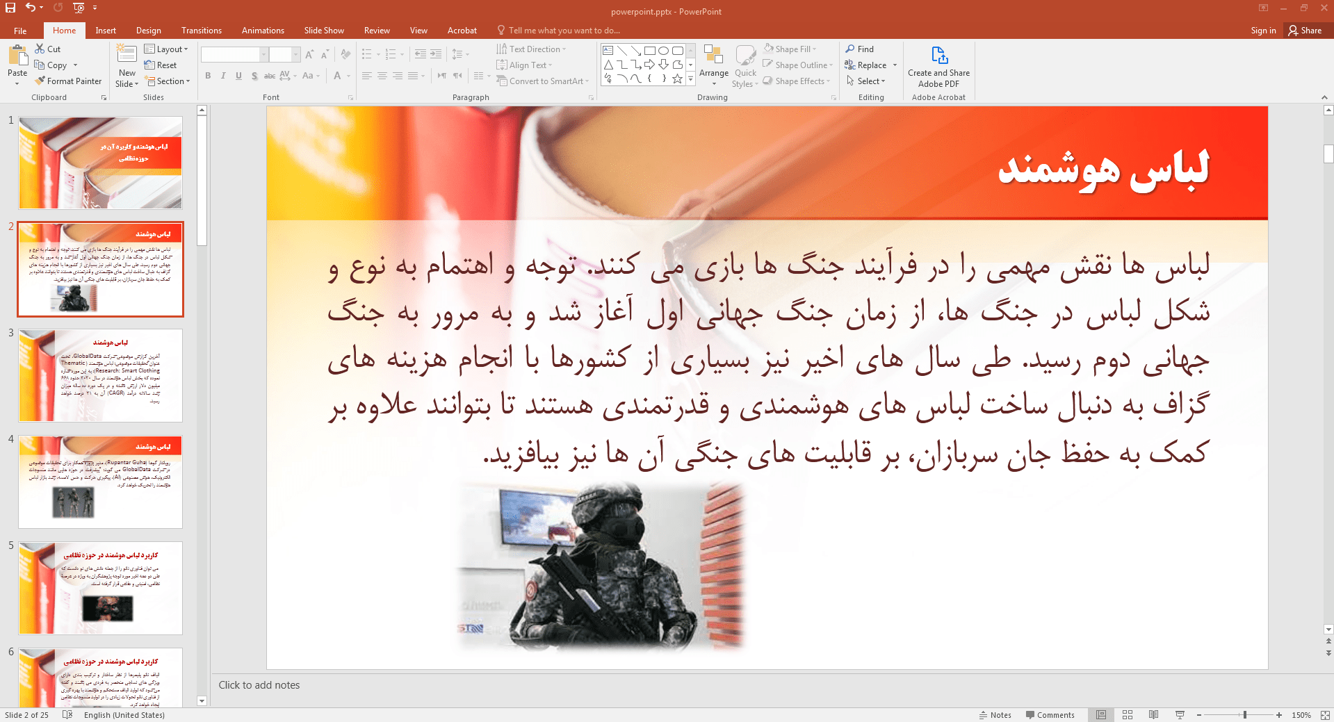 دانلود پاورپوینت مطالعه ای بر کاربردهای لباس هوشمند در حوزه های نظامی