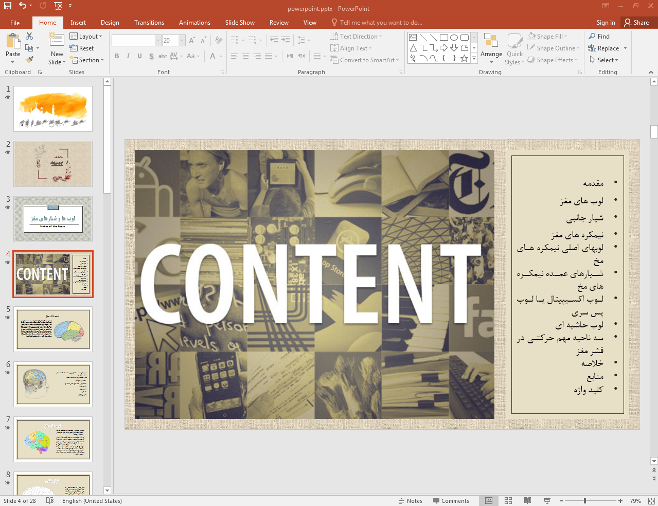 این پاورپوینت در 28 اسلاید تهیه شده و در ادامه نیز تصویر مربوط به اسلاید شماره 4 آن قرار داده شده است: