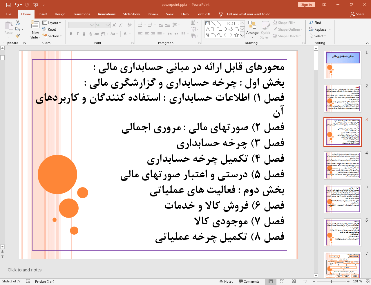 این پاورپوینت در 77 اسلاید تهیه شده و در ادامه نیز تصویر مربوط به اسلاید شماره 3 آن قرار داده شده است: