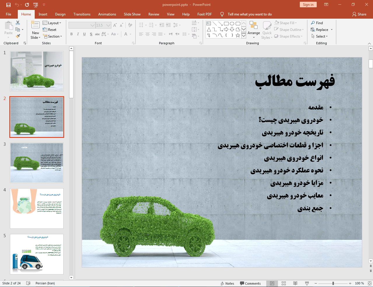 در این پاورپوینت که با قالب (تم) زیبا و حرفه ای طراحی شده است به آشنایی با مبانی خودروهای هیبریدی در 24 اسلاید و فایل قابل ویرایش پرداخته ایم. در صورت وجود هر گونه مشکل لطفا با بخش پشتیبانی به شماره 09360147484 تماس بگیرید.