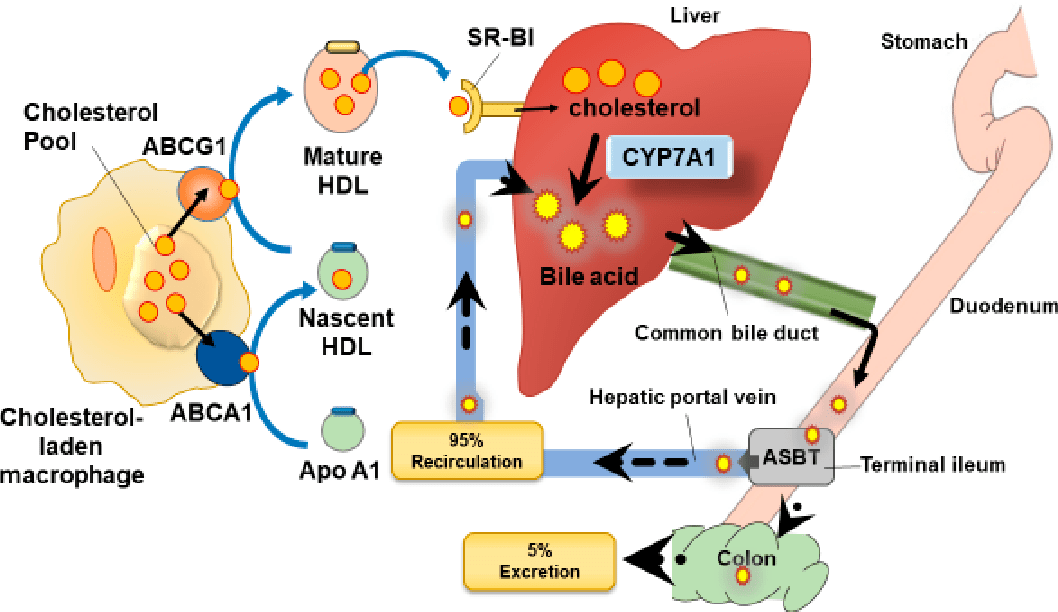 سنتز کلسترول: کبد بیشترین مقدار کلسترول بدن را تولید میکند. برخی از کلسترول نیز از طریق رژیم غذایی به دست میآید.