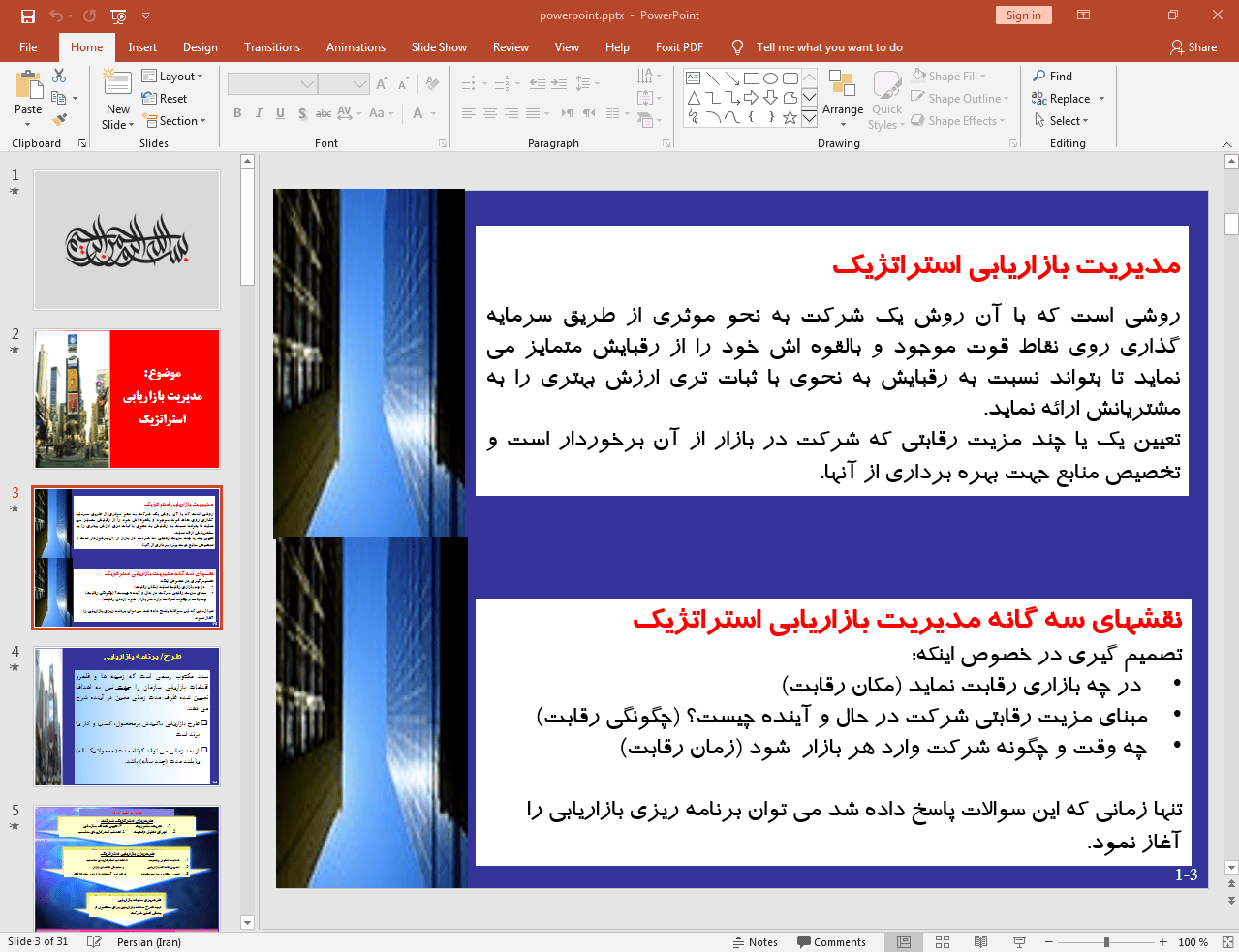 این پاورپوینت در 31 اسلاید تهیه شده و در ادامه نیز تصویر مربوط به اسلاید شماره 3 آن قرار داده شده است: