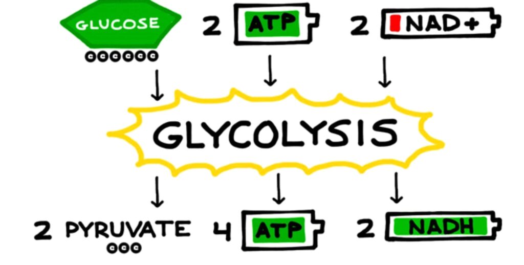 مرحله بازدهی: در این مرحله، چهار مولکول ATP تولید میشود و همچنین دو مولکول NADH تشکیل میشود. بنابراین، در کل، دو مولکول ATP خالص و دو مولکول NADH در هر مولکول گلوکز تولید میشود.