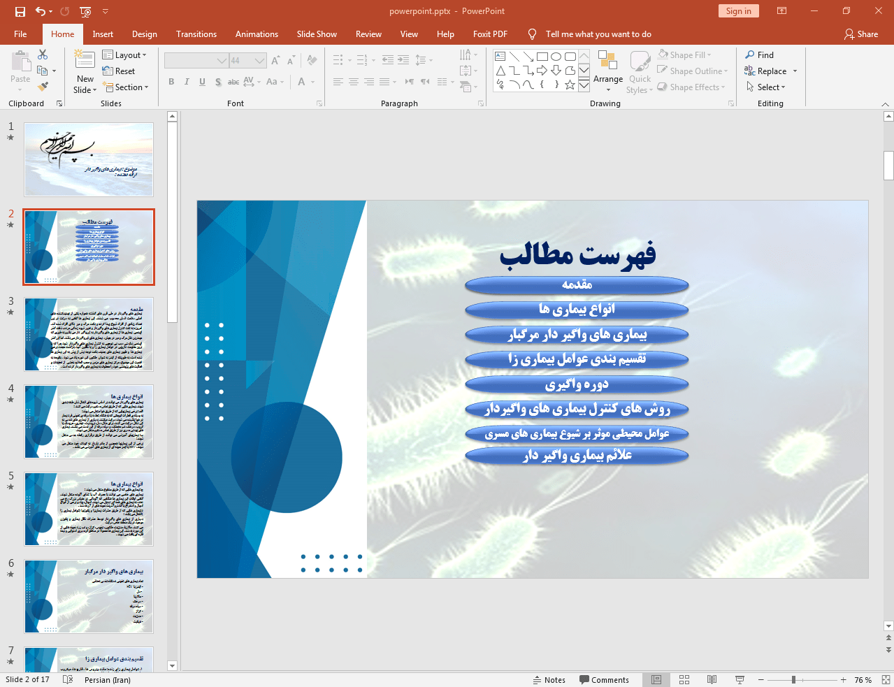 این پاورپوینت در 17 اسلاید تهیه شده و در ادامه نیز تصویر مربوط به اسلاید شماره 2 آن قرار داده شده است: