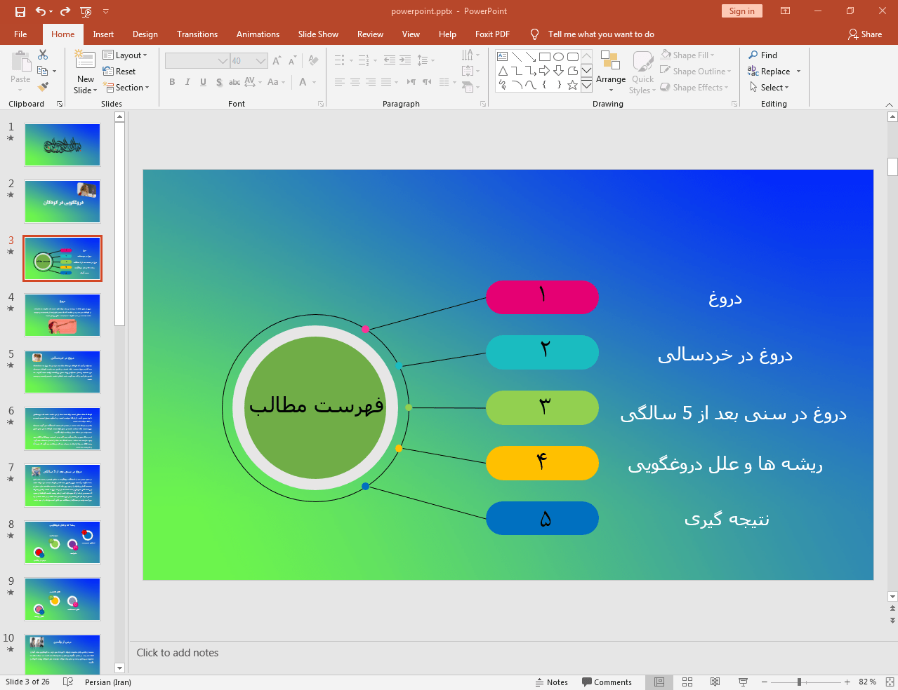 این پاورپوینت در 26 اسلاید تهیه شده و در ادامه نیز تصویر مربوط به اسلاید شماره 3 آن قرار داده شده است: