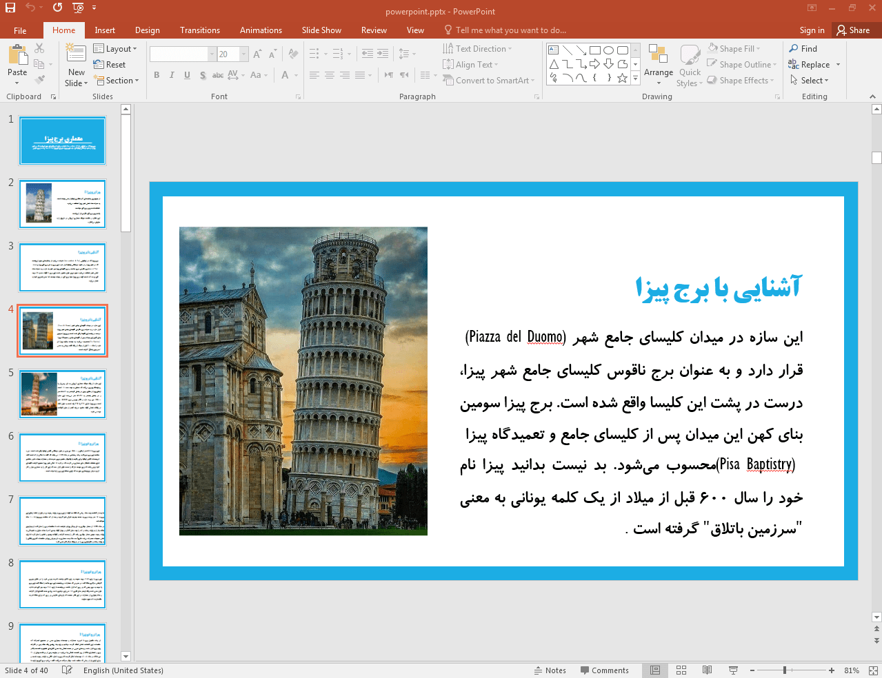 این پاورپوینت در 40 اسلاید تهیه شده و در ادامه نیز تصویر مربوط به اسلاید شماره 4 آن قرار داده شده است: