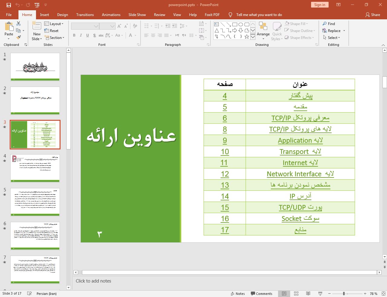 این پاورپوینت در 17 اسلاید تهیه شده و در ادامه نیز تصویر مربوط به اسلاید شماره 3 آن قرار داده شده است: