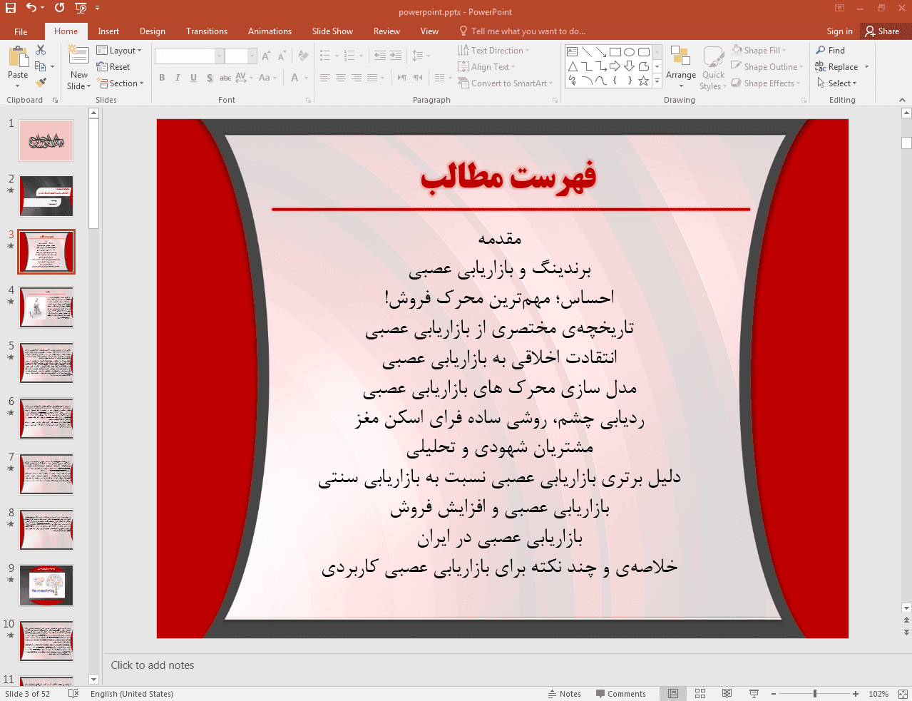 این پاورپوینت در 52 اسلاید تهیه شده و در ادامه نیز تصویر مربوط به اسلاید شماره 3 آن قرار داده شده است:
