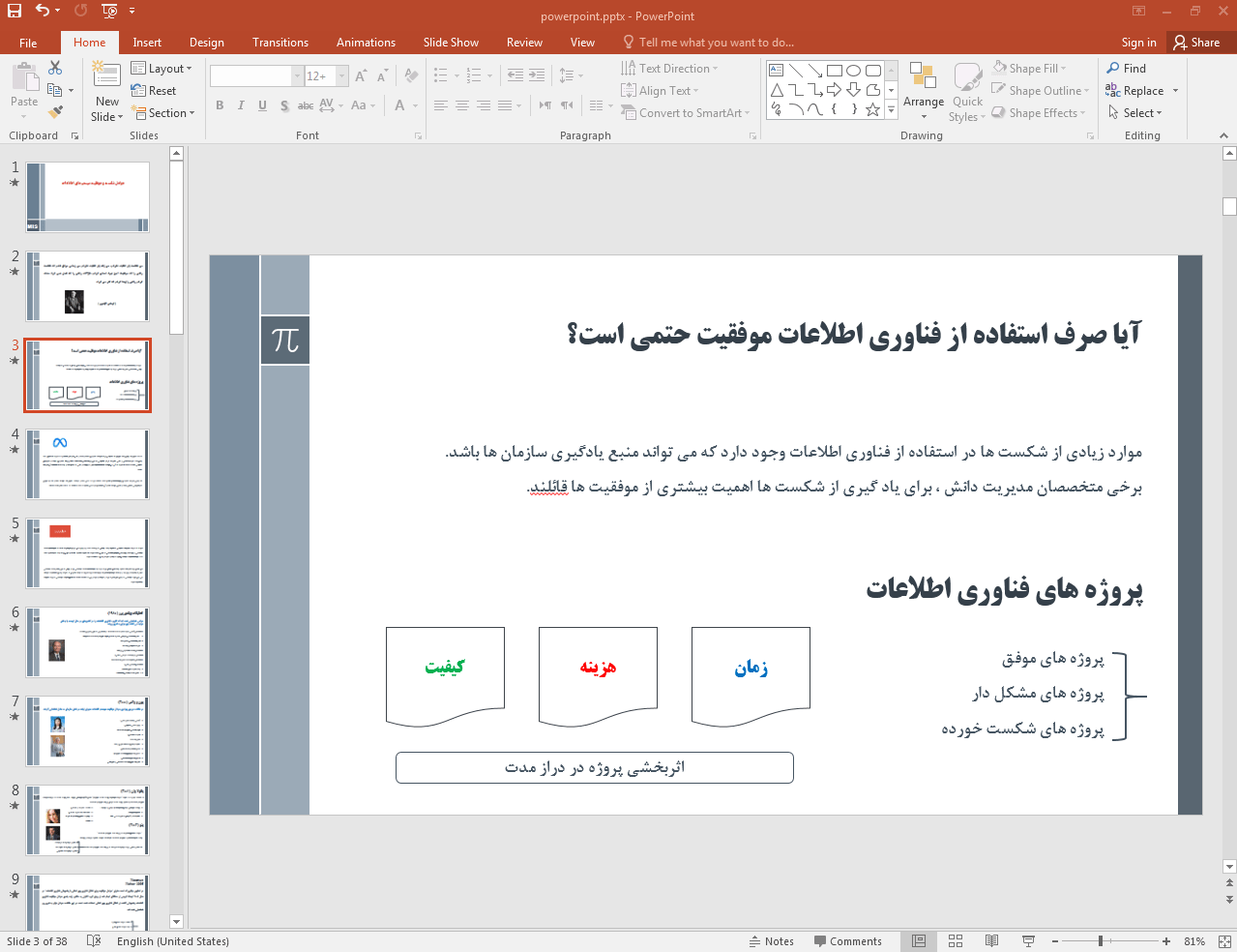 این پاورپوینت در 38 اسلاید تهیه شده و در ادامه نیز تصویر مربوط به اسلاید شماره 3 آن قرار داده شده است: