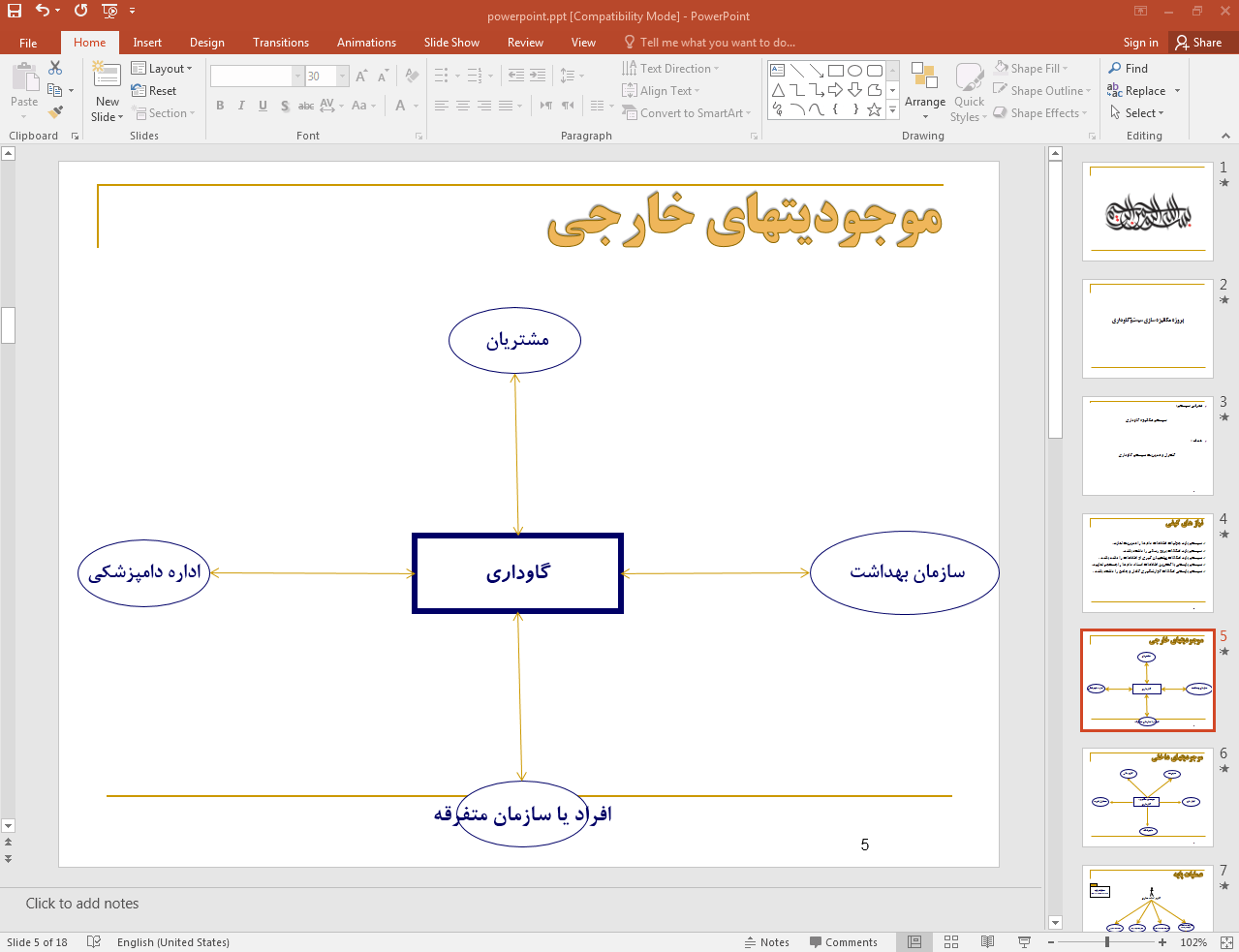 این پاورپوینت در 18 اسلاید تهیه شده و در ادامه نیز تصویر مربوط به اسلاید شماره 5 آن قرار داده شده است: