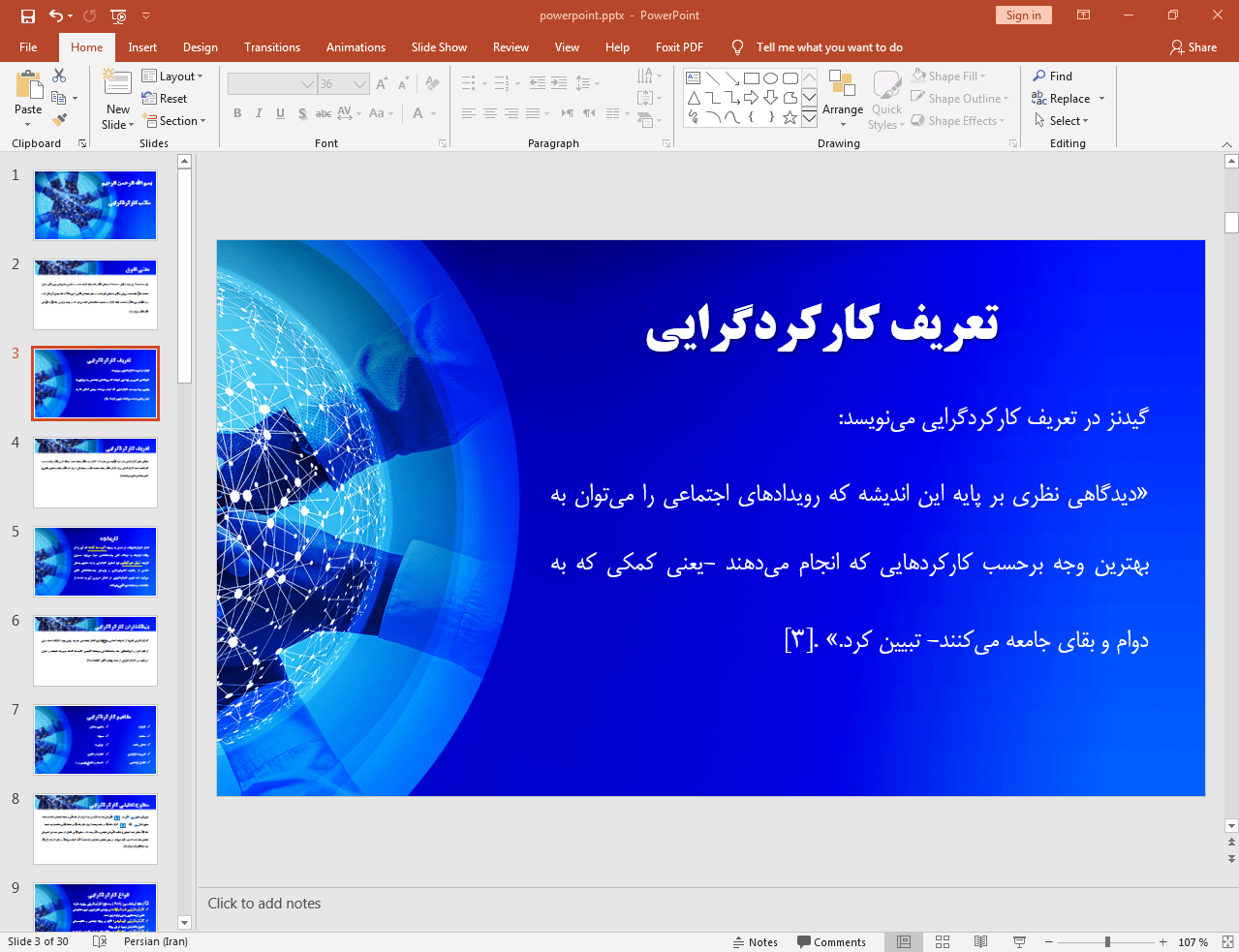 این پاورپوینت در 30 اسلاید تهیه شده و در ادامه نیز تصویر مربوط به اسلاید شماره 3 آن قرار داده شده است: