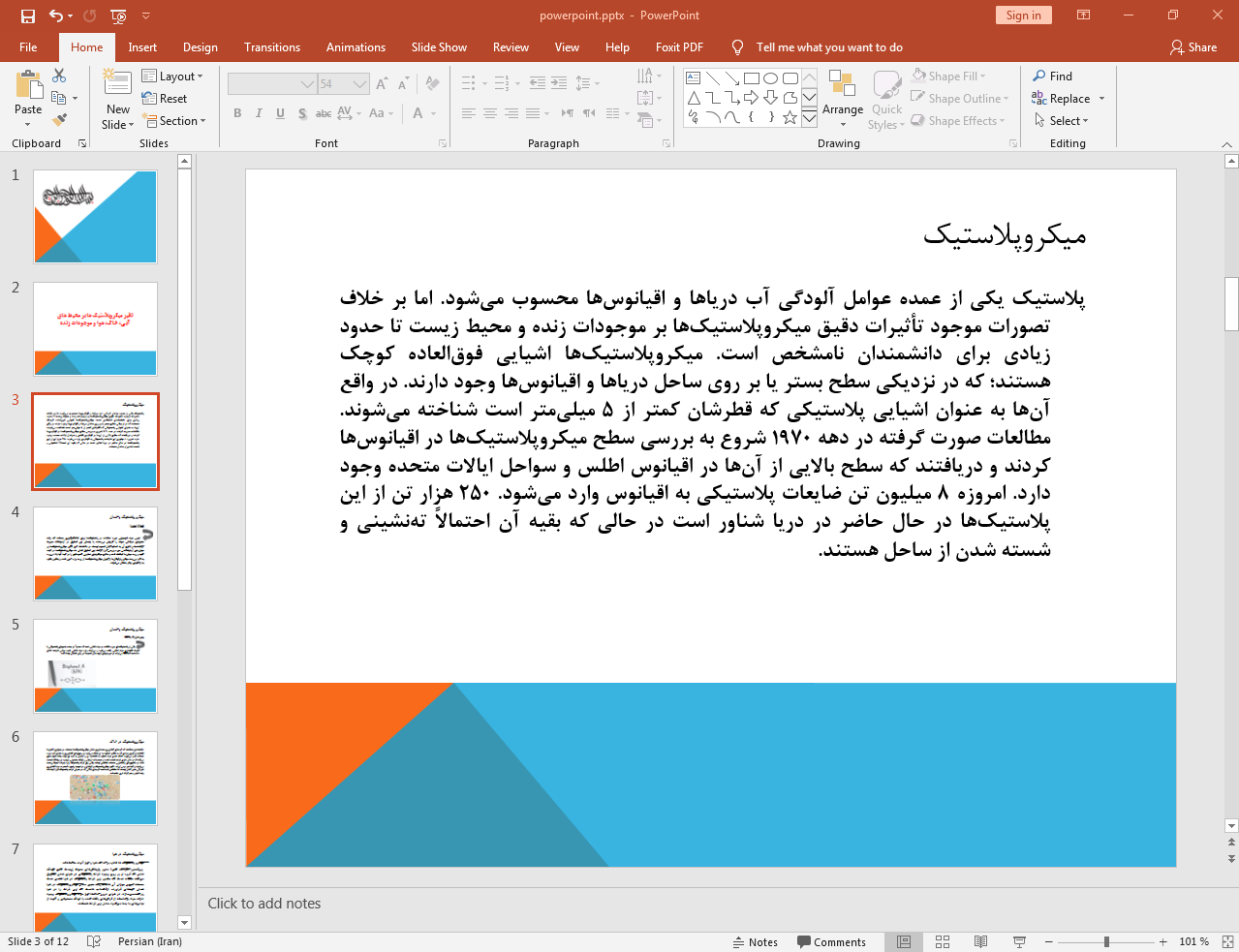 دانلود پاورپوینت تاثیر میکروپلاستیک ها بر محیط های آبی، خاک، هوا و موجودات زنده