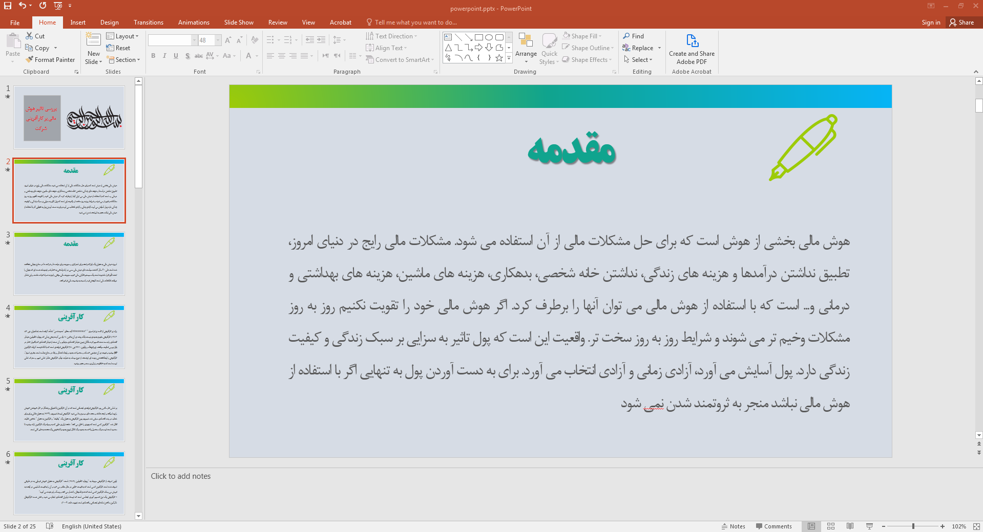 این پاورپوینت در 25 اسلاید تهیه شده و در ادامه نیز تصویر مربوط به اسلاید شماره 2 آن قرار داده شده است: