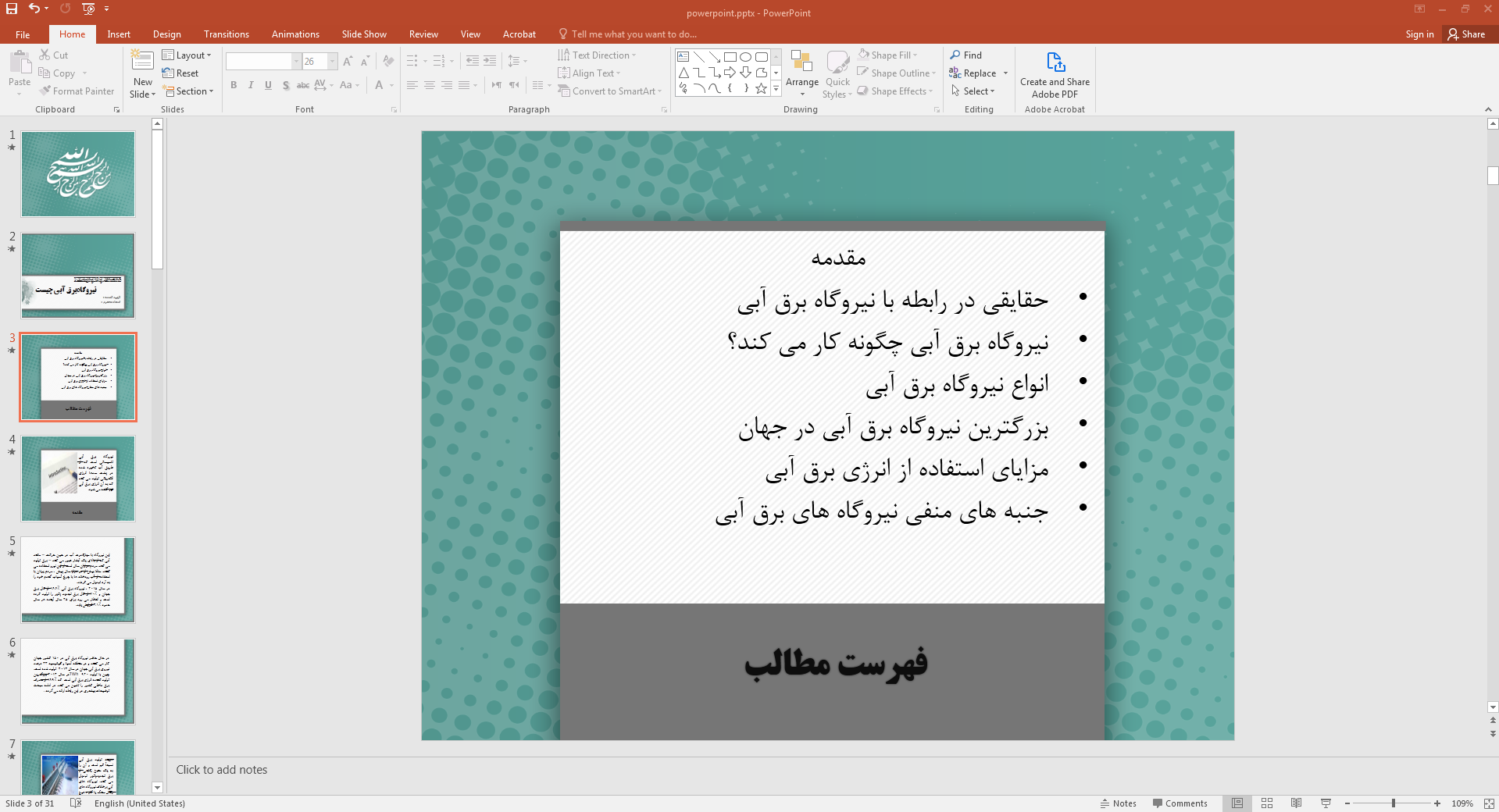 این پاورپوینت در 31 اسلاید تهیه شده و در ادامه نیز تصویر مربوط به اسلاید شماره 3 آن قرار داده شده است:
