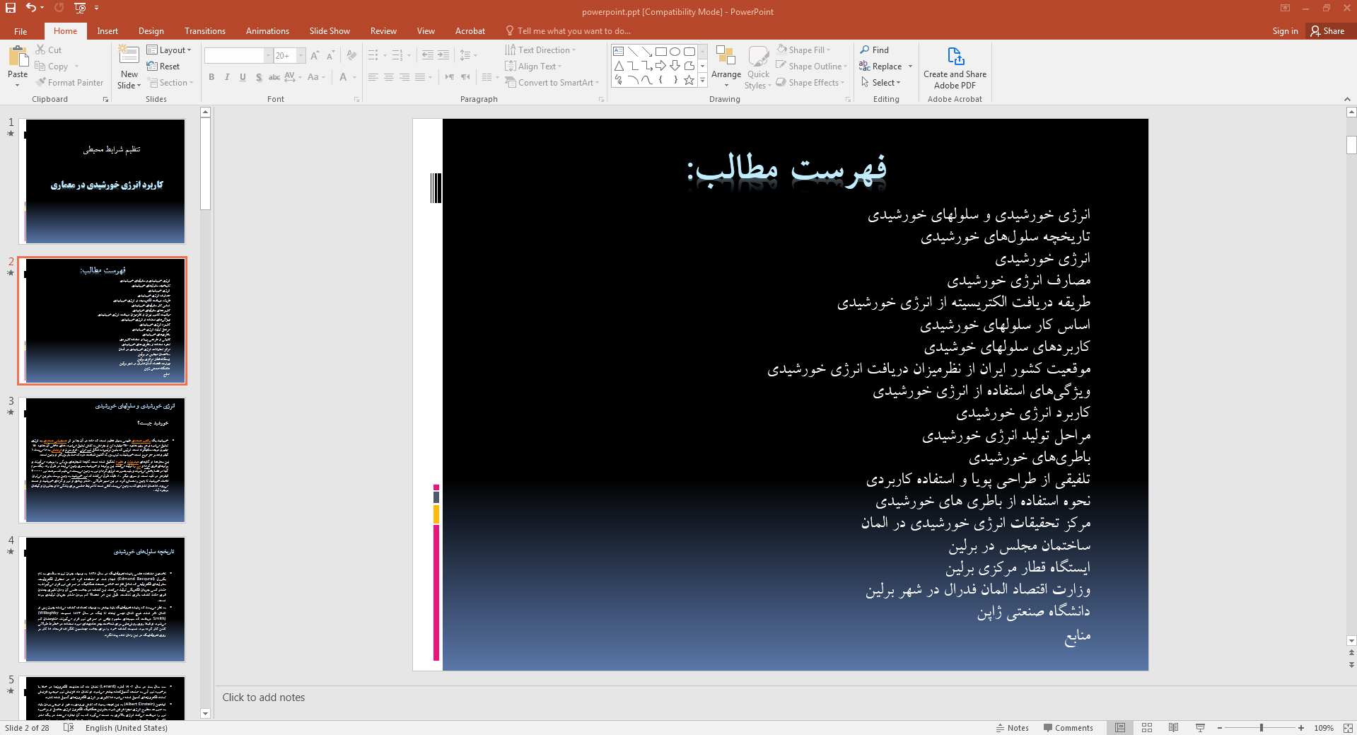این پاورپوینت در 28 اسلاید تهیه شده و در ادامه نیز تصویر مربوط به اسلاید شماره 2 آن قرار داده شده است: