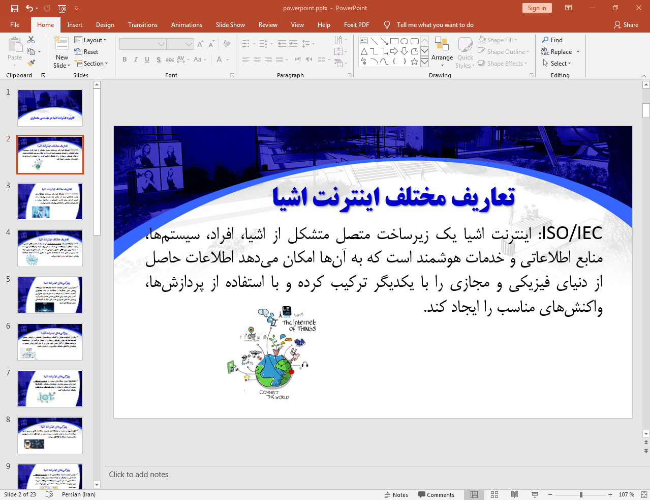 این پاورپوینت در 23 اسلاید تهیه شده و در ادامه نیز تصویر مربوط به اسلاید شماره 2 آن قرار داده شده است: