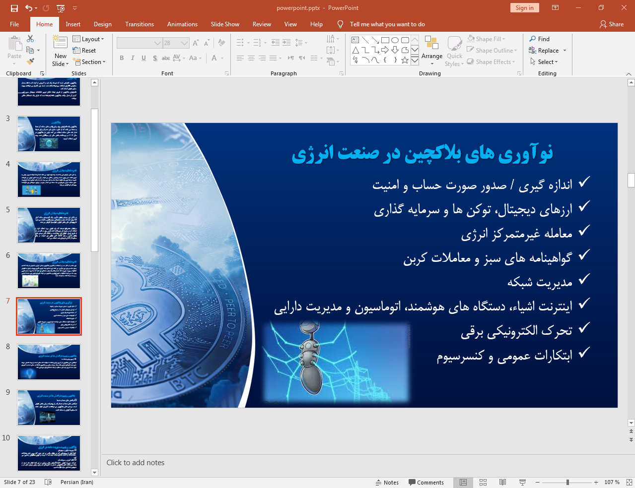 این پاورپوینت در 23 اسلاید تهیه شده و در ادامه نیز تصویر مربوط به اسلاید شماره 7 آن قرار داده شده است:
