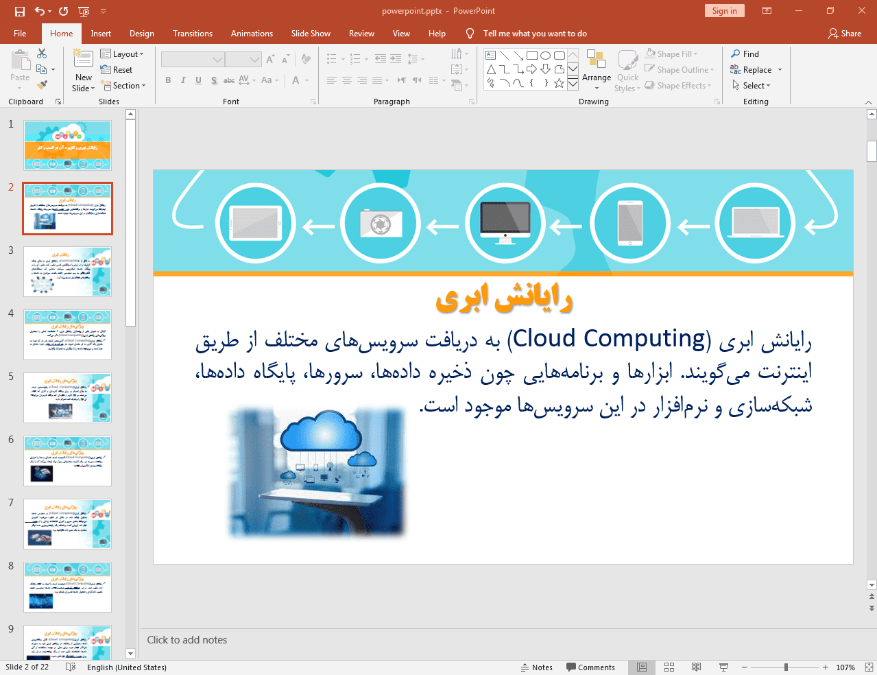 این پاورپوینت در 22 اسلاید تهیه شده و در ادامه نیز تصویر مربوط به اسلاید شماره 2 آن قرار داده شده است: