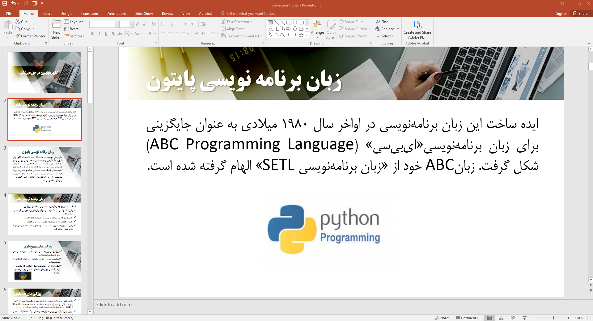 این پاورپوینت در 28 اسلاید تهیه شده و در ادامه نیز تصویر مربوط به اسلاید شماره 2 آن قرار داده شده است: