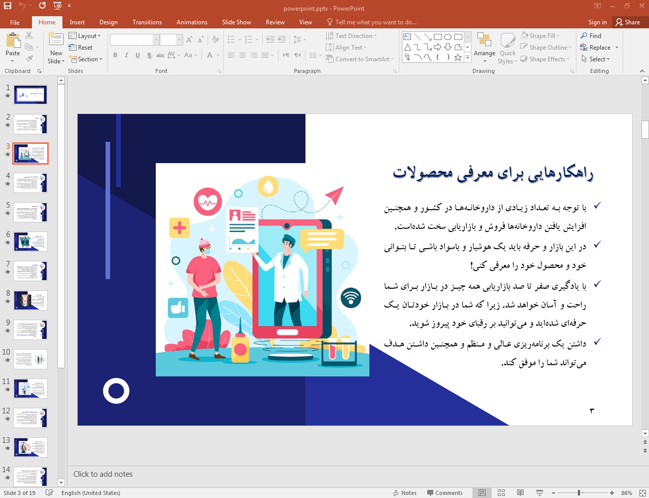 این پاورپوینت در 19 اسلاید تهیه شده و در ادامه نیز تصویر مربوط به اسلاید شماره 3 آن قرار داده شده است: