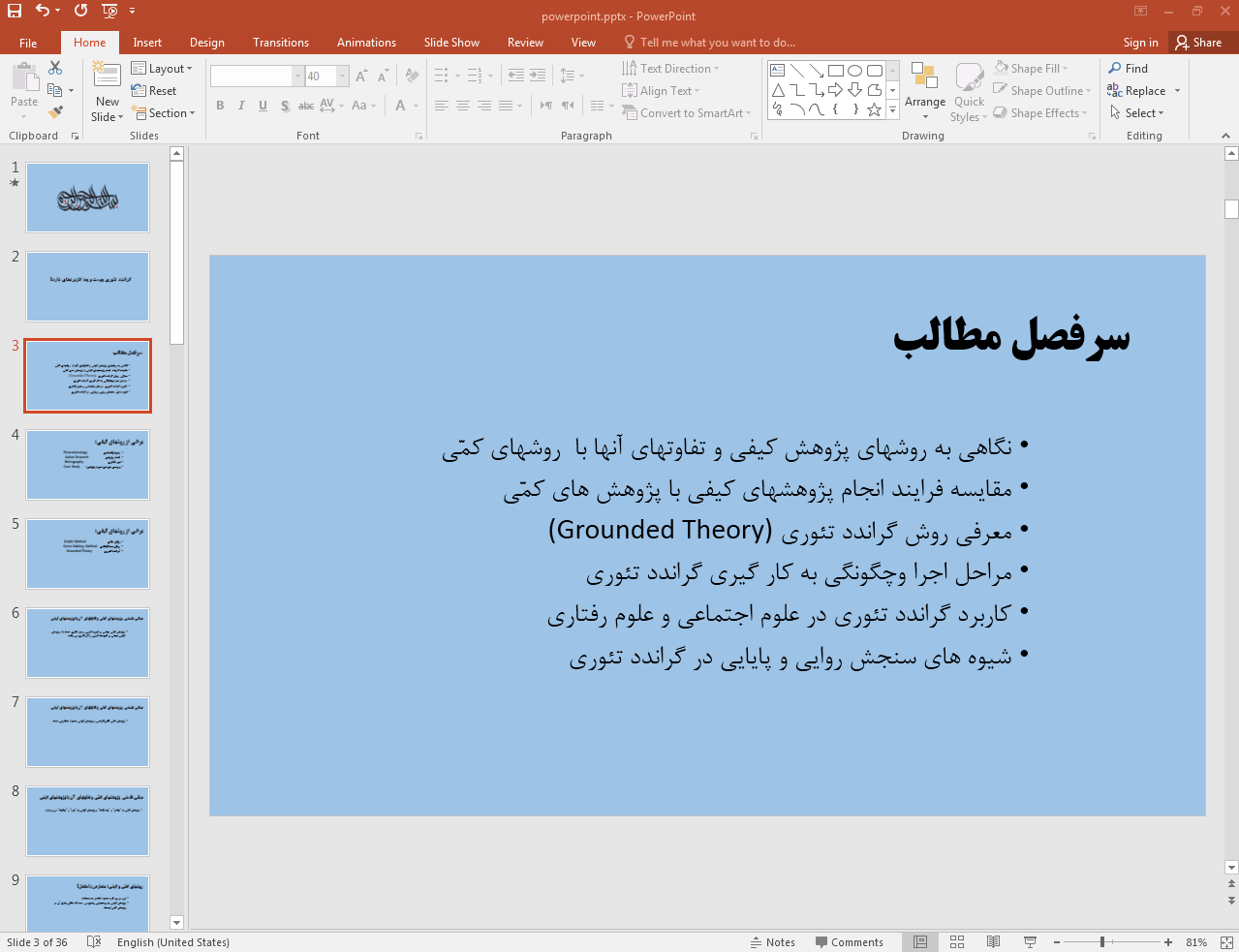 این پاورپوینت در 36 اسلاید تهیه شده و در ادامه نیز تصویر مربوط به اسلاید شماره 3 آن قرار داده شده است: