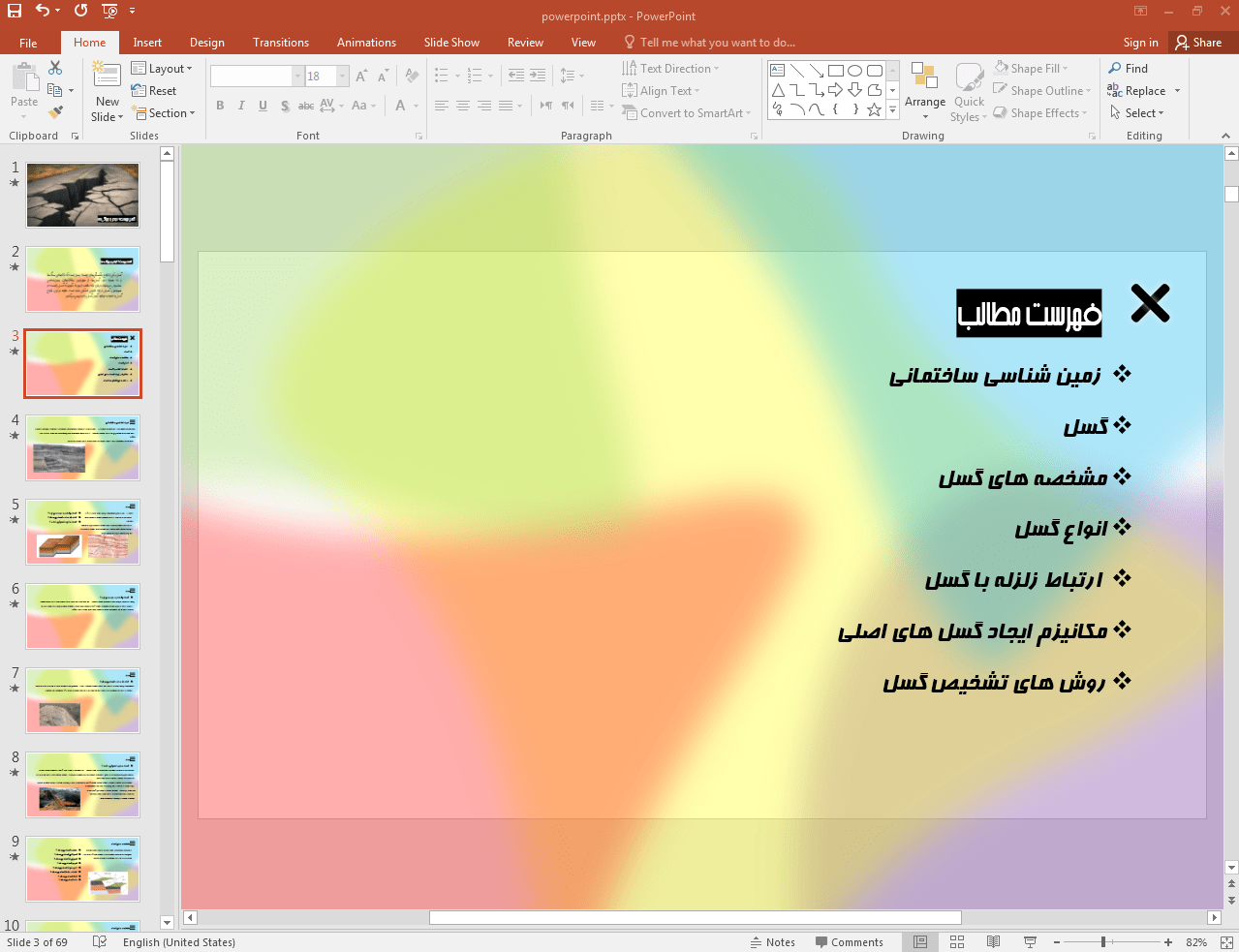 این پاورپوینت در 69 اسلاید تهیه شده و در ادامه نیز تصویر مربوط به اسلاید شماره 3 آن قرار داده شده است: