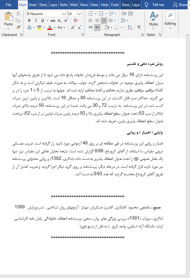 این پرسشنامه در 3 صفحه به صورت فایل ورد (WORD) قابل ویرایش و PDF تهیه شده و دارای 16 پرسش یا گویه می باشد. فایل مقاله بیس یا پایه مرتبط با این پرسشنامه نیز در داخل محصول قرار داده شده است. این پرسشنامه دارای روایی و پایایی و تفسیر و نمره گذاری می باشد و در ادامه نیز تصویر مربوط به یکی از صفحات آن قرار داده شده است: