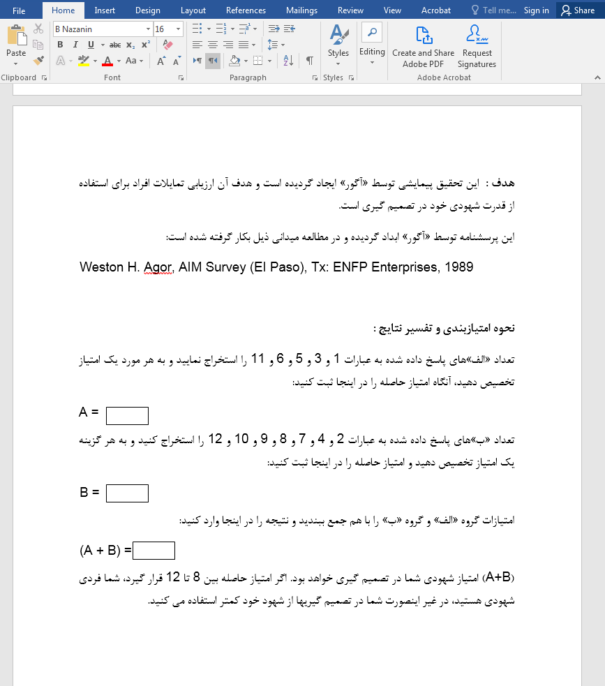 ارزیابی توانایی شهودی در تصمیم گیری |