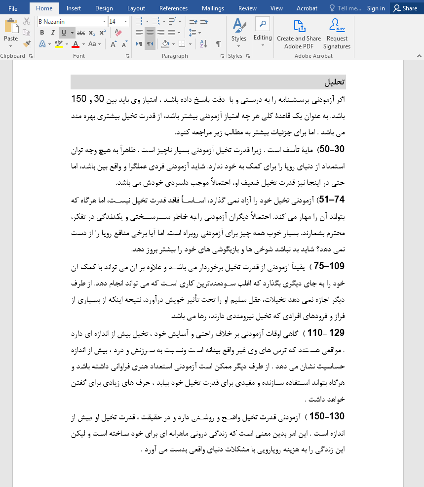 این پرسشنامه در 11 صفحه به صورت فایل ورد (WORD) قابل ویرایش و PDF تهیه شده و دارای 30 پرسش یا گویه می باشد. فایل مقاله بیس مرتبط با این پرسشنامه در داخل پکیج قرار داده شده است. این پرسشنامه دارای تحلیل و تفسیر و نمره گذاری می باشد. در ادامه، تصویر مربوط به بخشی از این پرسشنامه قرار داده شده است: