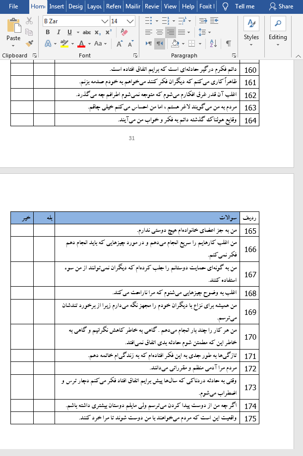 این پرسشنامه در 40 صفحه به صورت فایل ورد (WORD) و PDF تهیه شده و دارای 175 پرسش یا گویه می باشد. منابع و مقالات مورد استفاده در تهیه این پرسشنامه نیز در انتهای آن ذکر شده اند. لازم به توضیح است که این پرسشنامه دارای مبانی نظری، روایی و پایایی، نحوه اجرا و نمره گذاری و تفسیر می باشد. در ادامه، تصویر مربوط به بخشی از این پرسشنامه قرار داده شده است: