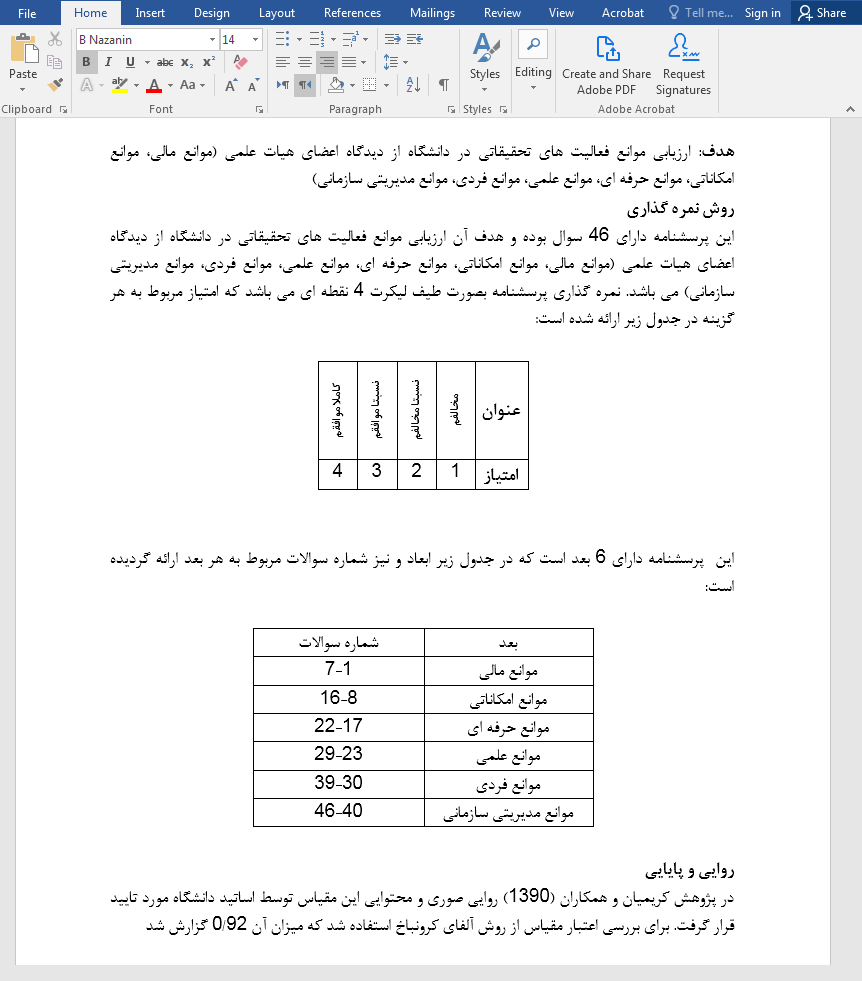 این پرسشنامه می تواند به ما کمک کند تا مشکلات و موانع اصلی در فعالیت های تحقیقاتی در دانشگاه را شناسایی کرده و از طریق این شناسایی، بهبودهای لازم را در سیستم تحقیقات دانشگاه اعمال کنیم. این ابزار مهم به دانشگاه کمک می کند تا بهترین شرایط را برای تحقیقات فراهم کند و به دانشجویان و پژوهشگران خود این امکان را بدهد تا بهترین عملکرد را در فعالیت های تحقیقاتی خود داشته باشند.