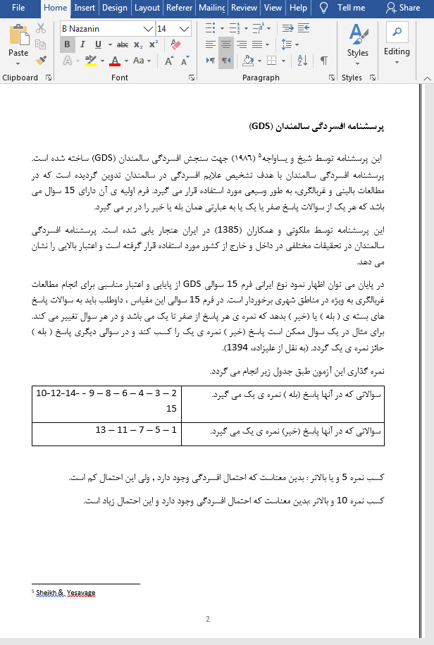 در تهیه این پرسشنامه از مقاله هنجار یابی مقیاس افسردگی سالمندان (GDS): فرم 15 سوالی در ایران نیز استفاده گردیده که فایل PDF آن نیز در داخل این بسته قرار داده شده است. همچنین از مقاله “تاثیر ورزش منظم بر میزان افسردگی سالمندان” نیز در تهیه این پرسشنامه استفاده گردیده و فایل PDF آن نیز در داخل این محصول قرار داده شده است.