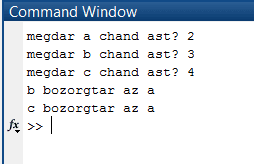 ;(‘ disp(‘a bozorg ast