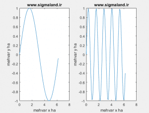 مثال: نمودار دو تابع سینوسی در کنار هم توسط subplot در متلب