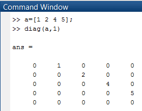 اگر بخواهید یک ستون بعد شروع گردد کافیست دستور زیر را وارد نمایید (diag(a,1 که نتیجه به صورت زیر حاصل می شود.