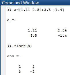 این تابع به معنای round است ولی همیشه به سمت پایین عمل می کند به عنوان مثال اگر عدد ۲.۶ هم به آن داده شود تبدیل به ۲ خواهد شد نه ۳، مثالی را برای استفاده از این تابع در یک ماتریس فرض در شکل زیر مشاهده می کنید.
