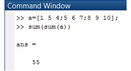 حال اگر بخواهید در یک درایه نمایش دهد یعنی کل درایه های یک ماتریس دو بعدی را جمع کرده و در یک درایه نشان دهد باید از ((sum(sum(a استفاده نمایید.