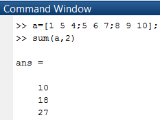همان طور که مشاهده می کنید (sum(a,2 ماتریس حاصل را ستونی نمایش می دهد.